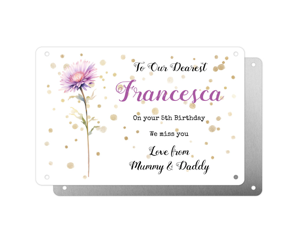 Featuring an exquisite aster design, this metal sign allows you to personalise it with a name and a special message, making it a heartfelt remembrance gift that expresses your love and condolescences beautifully.