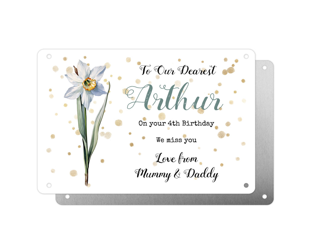 Personalised Graveside Plaque, Aluminium Bereavement Sheet, Metal Sign, White Narcissus Remembrance Gift