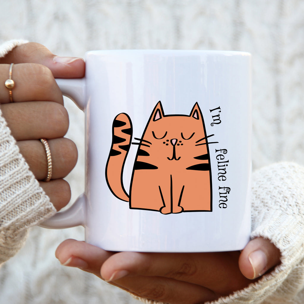 I'm Feline Fine, Funny Birthday Gift with Cat Design, Personalised Mug