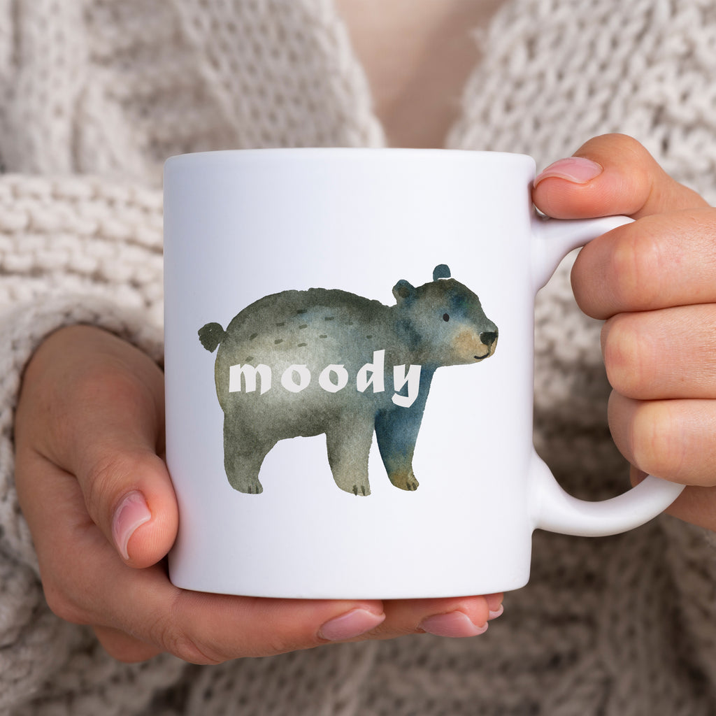 Moody, Funny Birthday Gift with Cute Bear Design, Personalised Mug