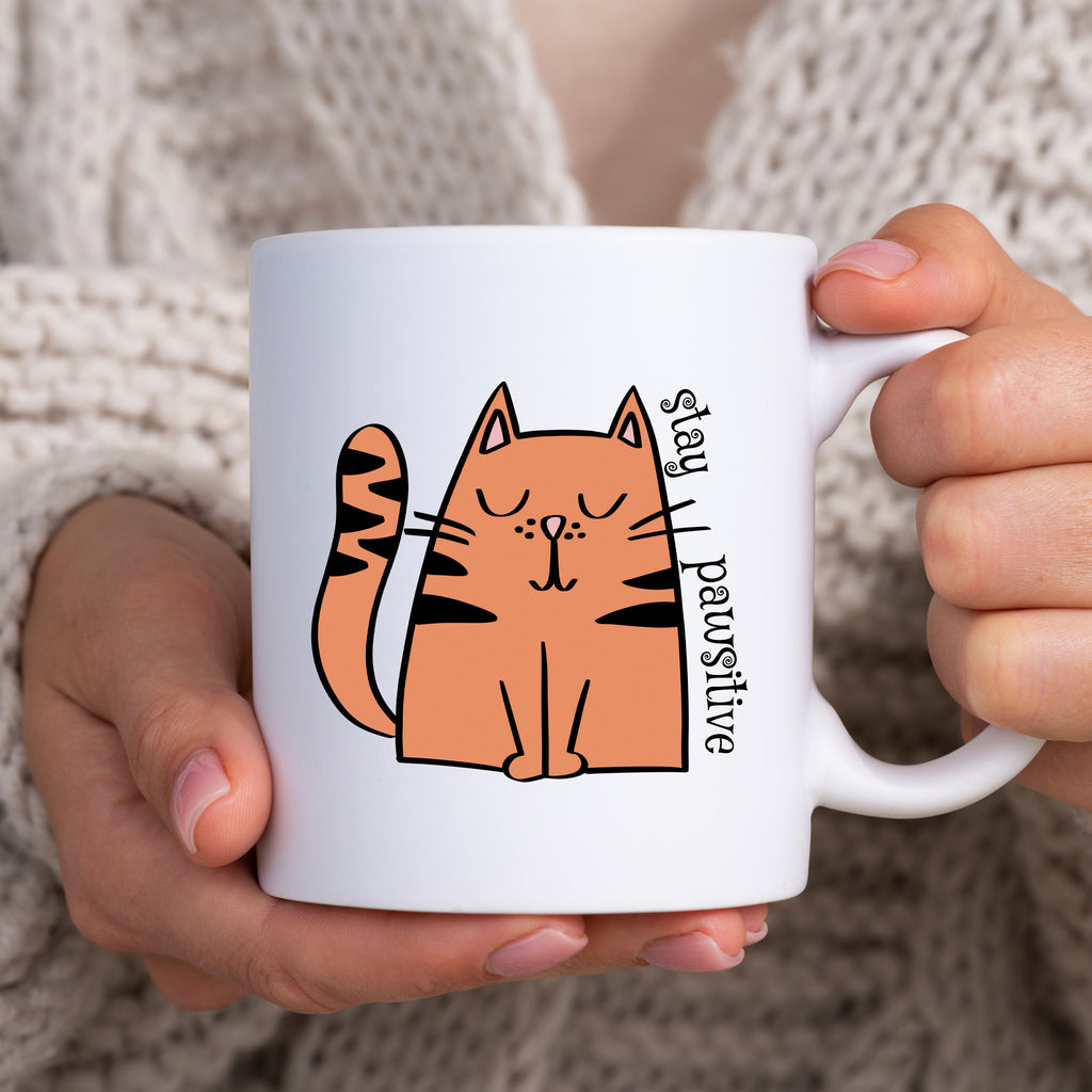 Stay Pawsitive, Funny Birthday Gift with Cat Design, Personalised Mug