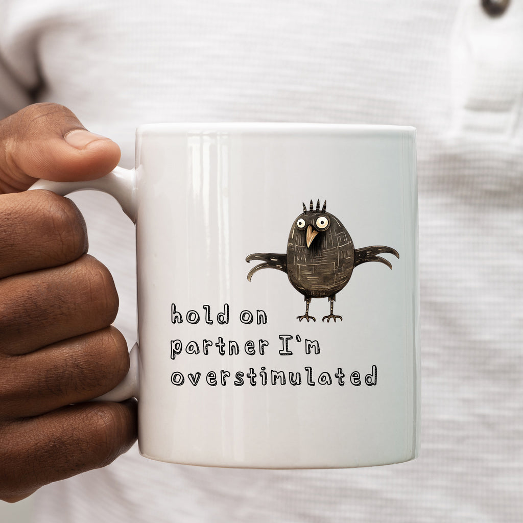 Hold On Partner I'm Overstimulated, Funny Offensive Birthday Gift, Personalised Joke Mug