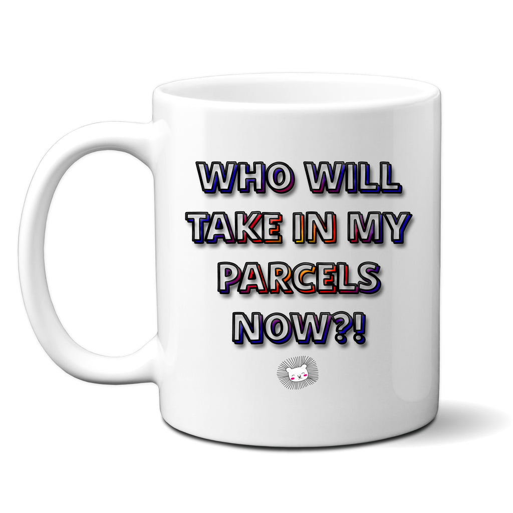 Who Will Take In My Parcels Now, Funny Moving Gift, Personalised Mug