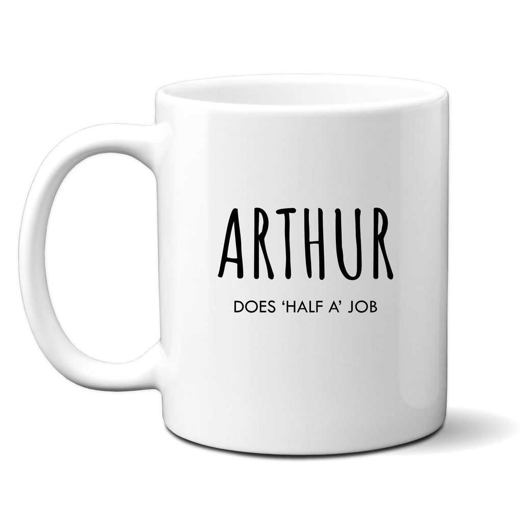 Arthur, Does 'Half a' Job, Funny Offensive Birthday Gift for Tradesman or Office Colleague, Personalised Mug