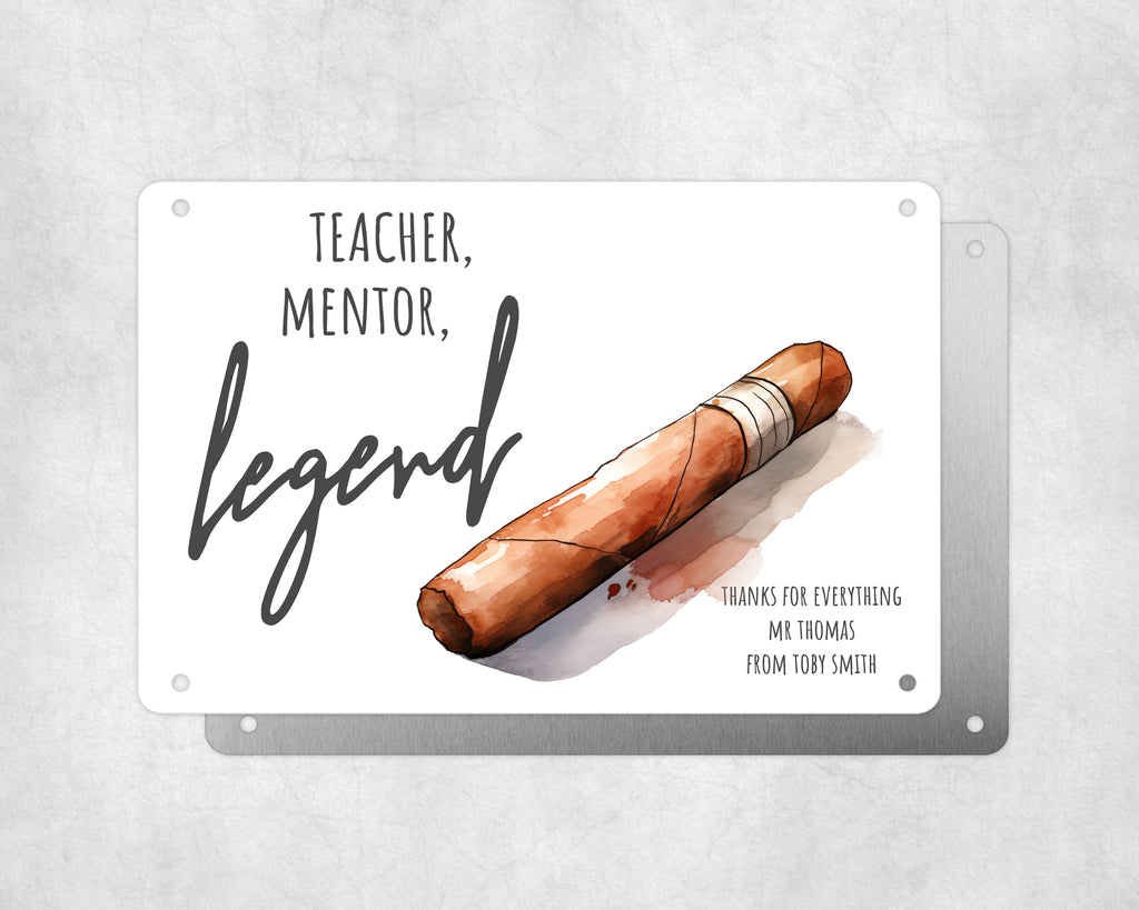 Personalised Teacher Tribute Plaque – 'Teacher. Mentor. Legend.' with Cigar Graphic, Leaving Gift